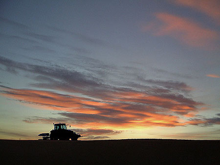 | Billedmanipulationer kan også bruges til at gøre et godt billede endnu bedre, den dramatiske aftenhimmel er flot, men billedet får en ekstra dimention, når der indkopieres en traktor med plov. |