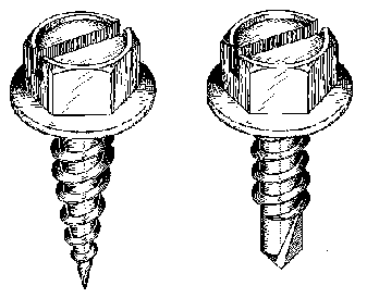 Teknisk illustration af 2 selvskærende skruer til tyndplademontage, fremstillet for Universal Fastgørelse A/S Tegning: Niels Ebbesen |